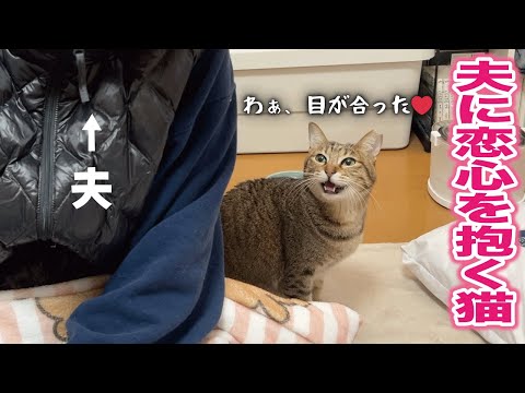 夫を溺愛しすぎて目が合うだけで大喜びする乙女な猫がかわいい